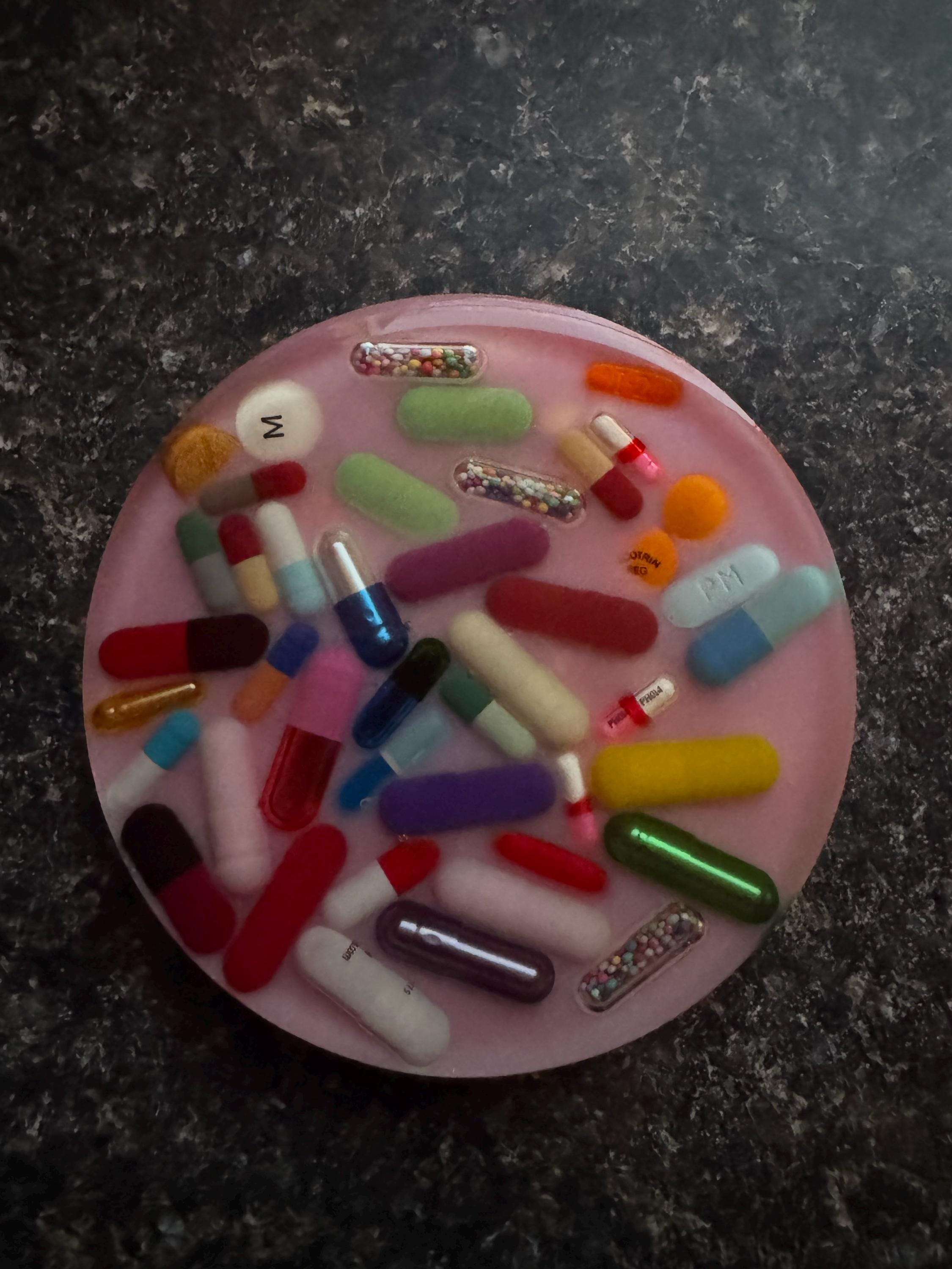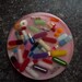 Super fun art piece handmade resin coaster with solid ink background.