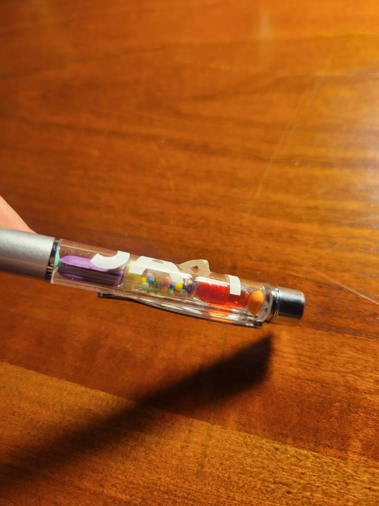 Ich habe diesen Kugelschreiber mit kleinen Pillen im Inneren und blauer Tinte gekauft und bin insgesamt zufrieden. Das Design ist einzigartig und ein echter Hingucker – die kleinen Pillen im Inneren machen ihn besonders interessant. Die Schreibqualität ist gut, die blaue Tinte fließt gleichmäßig, ohne zu schmieren.