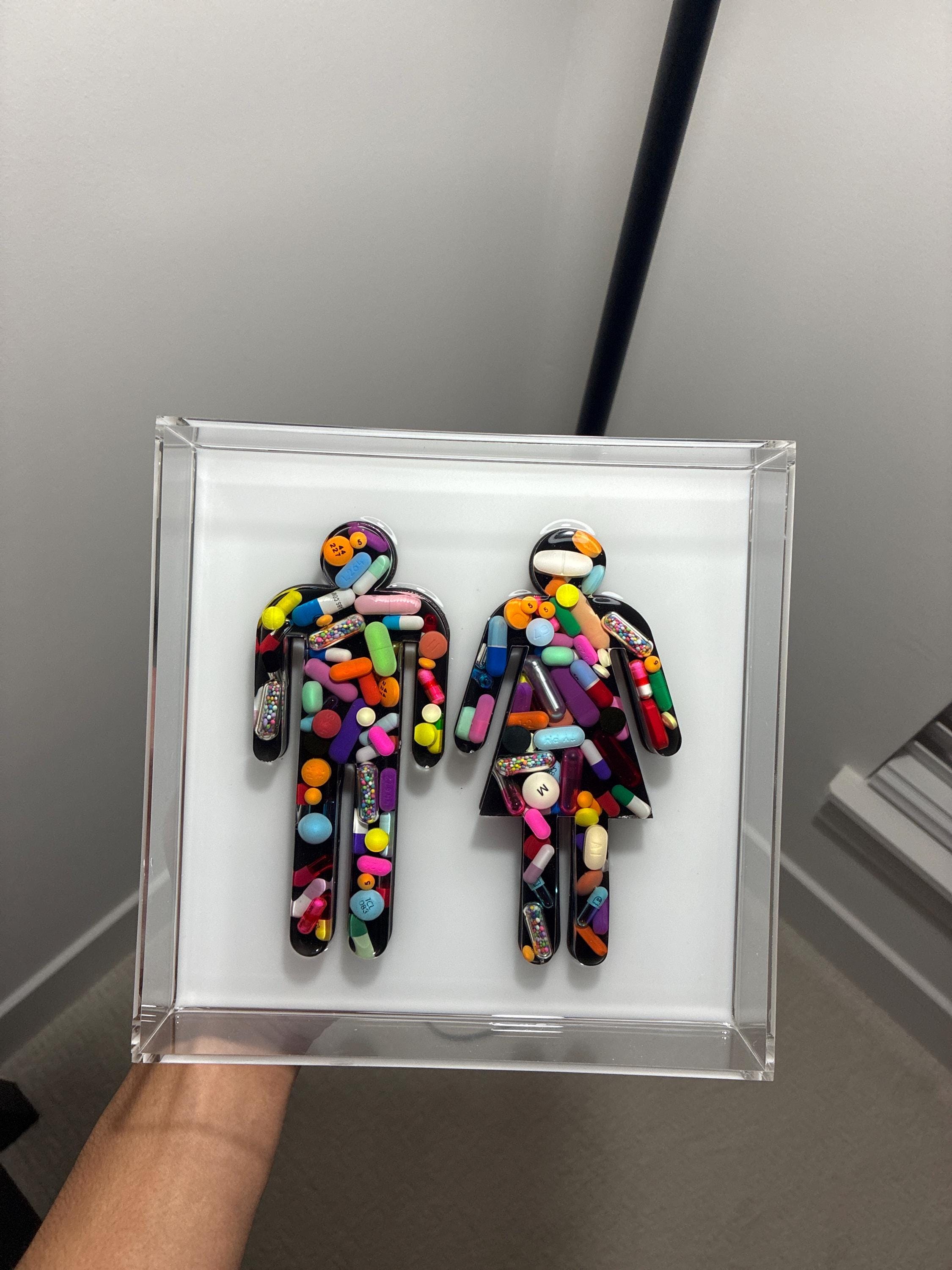 Brand New 7.5"x7.5" Acrylic Framed art piece and approximately 2" thick with two sawtooth hangers on the opaque white background. This comes ready to hang.