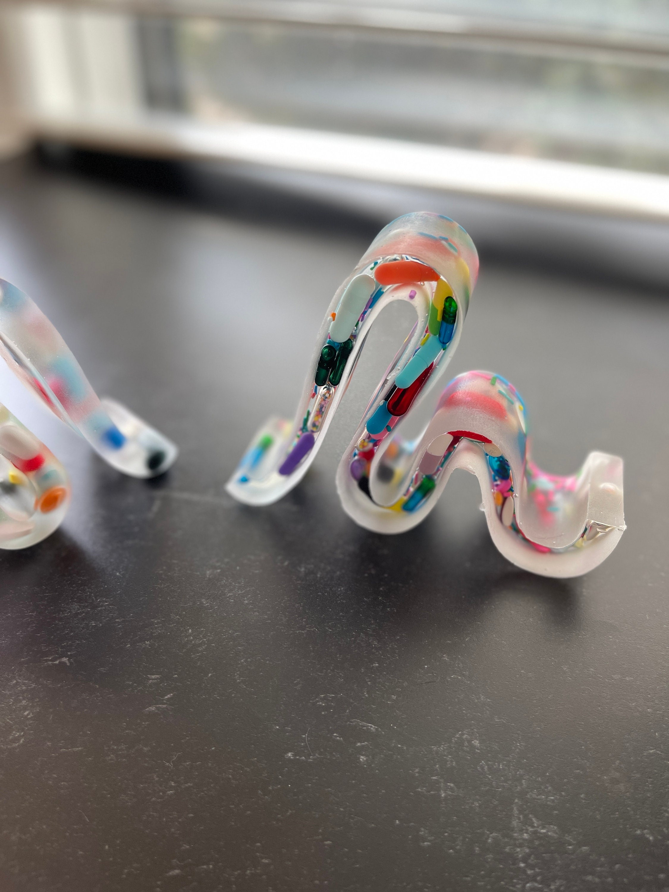 High quality, non-toxic, art resin with zero VOCs and odor free is always used.