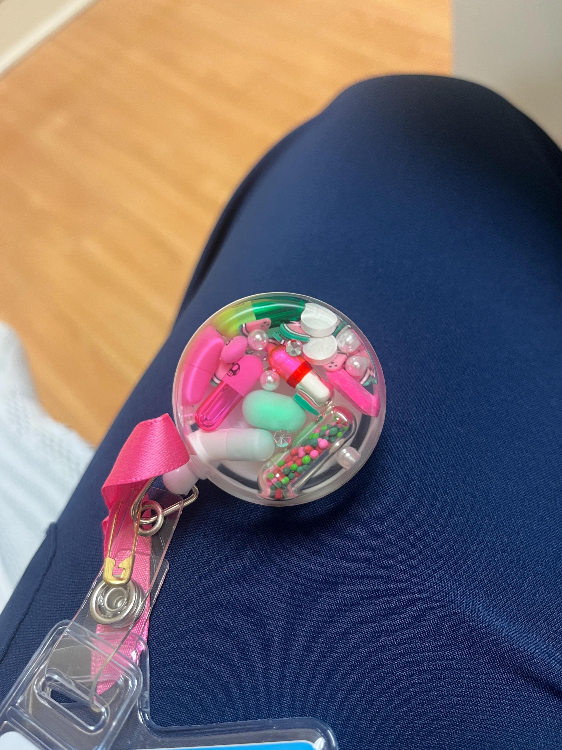 Super fun handmade resin bubble with clear background attach to a badge reel. This listing is for a single badge reel.