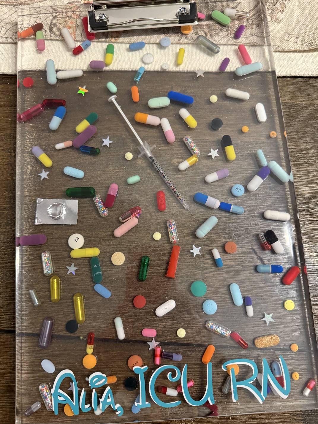 Our new Chill Pill clipboard is a one-of-a-kind gift for your favorite Pharmacist, Doctor, Nurse...or yourself! We are able to customize the bottom of the clipboard so it's visible when a letter size paper is in the clip. There will be a layer of resin over the vinyl so it will never peel.