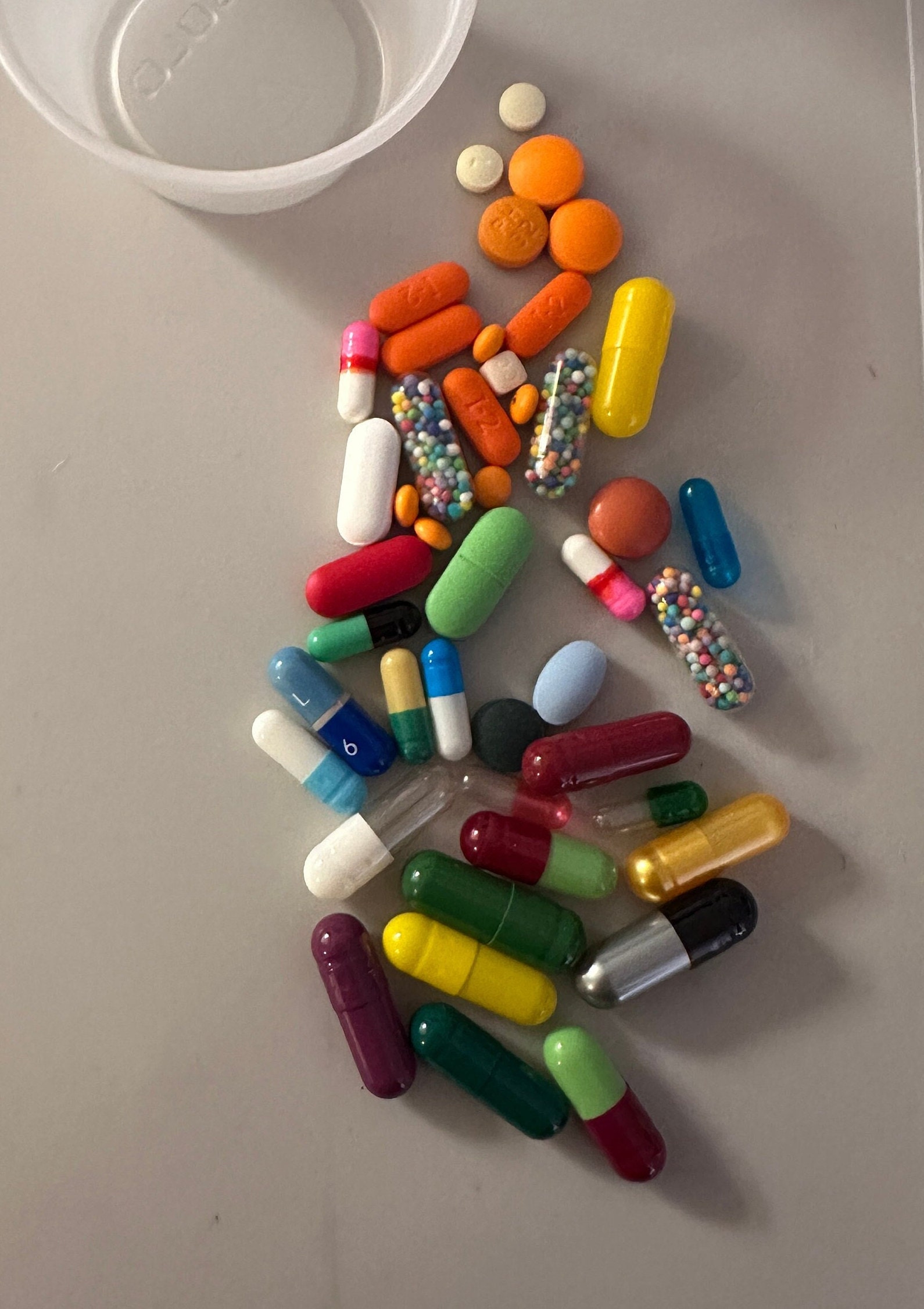 Pill pack of mixed empty capsules and chill pills with sprinkles. Not every pill pack will be the same but each one will come with 3 chill pills with sprinkles. It' ranges from 40-50 pills but average is 45 pills per pack. These are for craft use only.