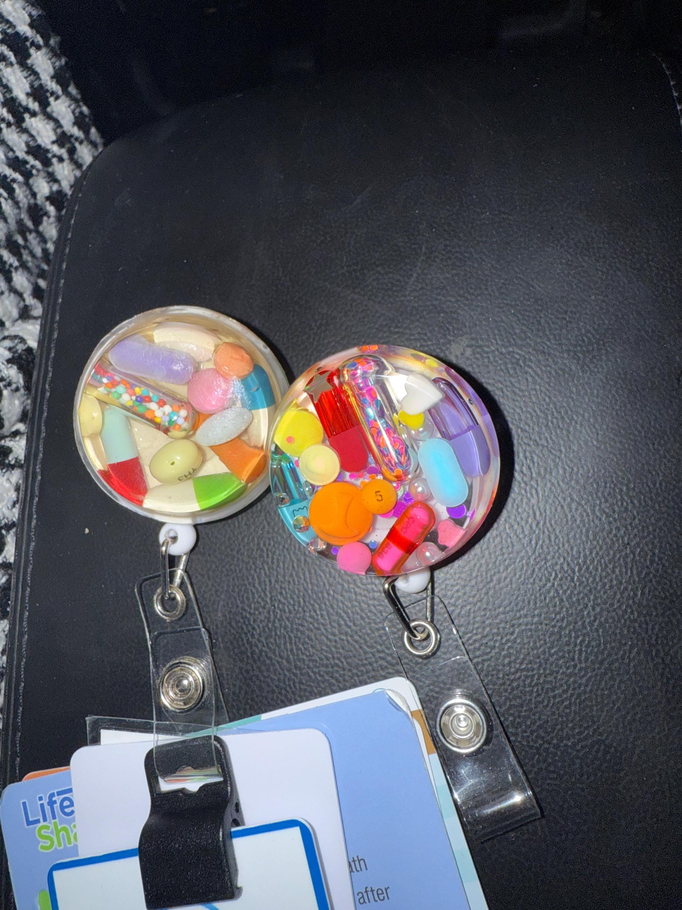 Super fun handmade resin bubble with clear background attach to a badge reel. This listing is for a single badge reel.