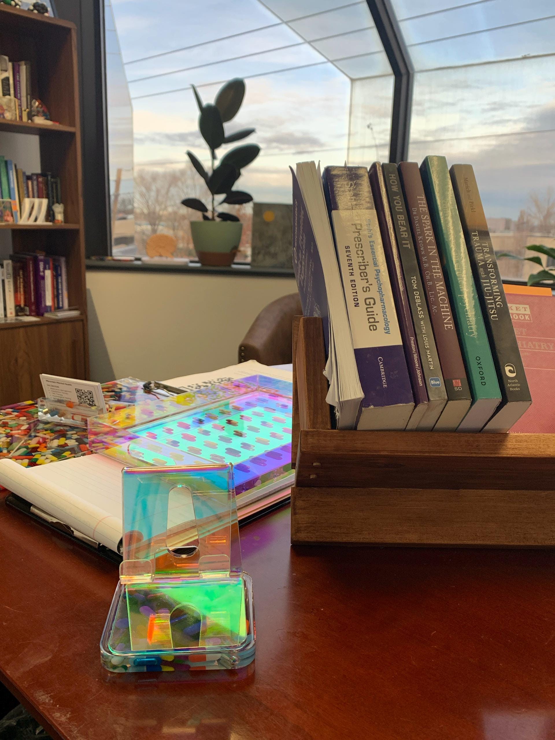 Super fun art piece handmade phone or tablet holder made with transparent resin and pills. Comes with clear rubber feet.
